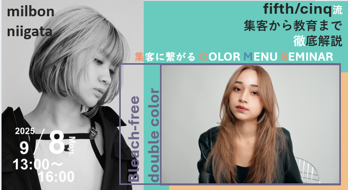 【fifth*cinq成功の秘訣】hotpepper beautyを使いこなす 今一番熱い成功店から、集客×技術×撮影まで丸々大公開! POINT①集客ツールを活用した集客ノウハウ&店内教育大公開 POINT②予約が埋まるデザインづくり【ブリーチあり&ブリーチなし】ダブルカラーモデル2名を展示解説 POINT③hotpepper beauty でクリックされるバナー用モデル撮影公開