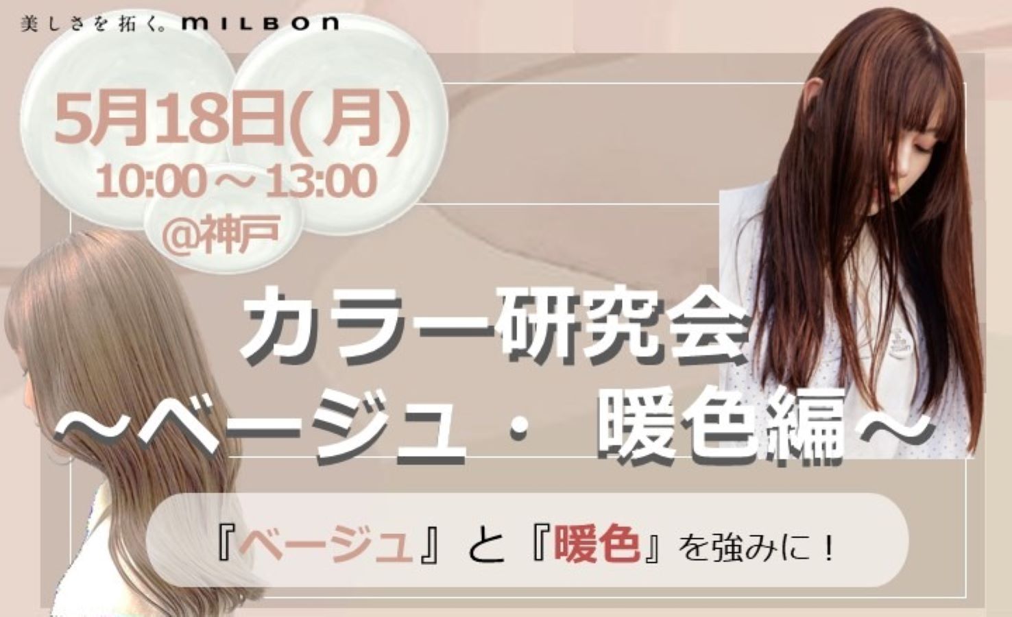 お客様からオーダーの多いベージュ~暖色までのバリエーションを失敗なく美しく仕上げられるような理論をブリーチ有り、無し共に学ぶ事が出来ます。 ブリーチコントロール、オンカラー理論を学ぶ事でカウンセリングの質が向上し、よりお客様にとっての魅力的なヘアカラーに仕上げることが出来ます。